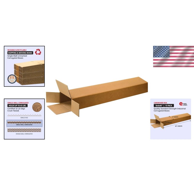 Eco-Friendly 15-Piece Kraft Side Loading Boxes - 8" x 4" x 46" Shipping Solution