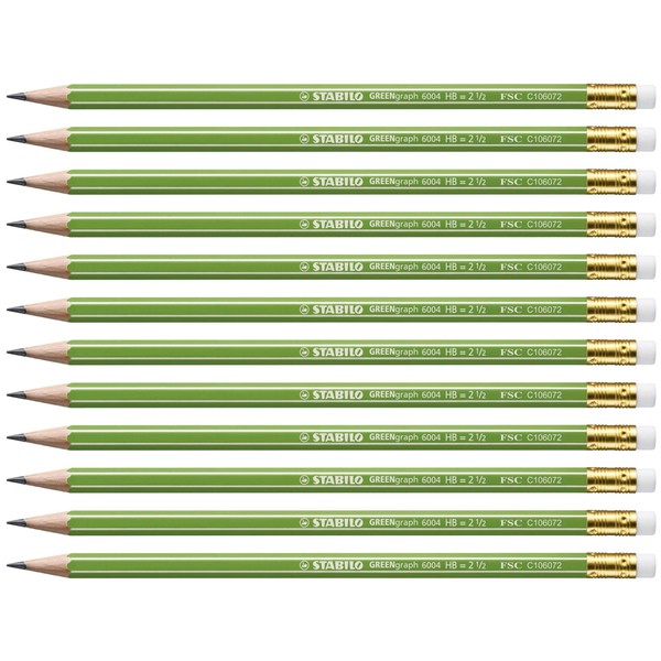 Eco-Friendly Graphite Pencil with Eraser - STABILO GREENgraph - Pack of 12 - HB