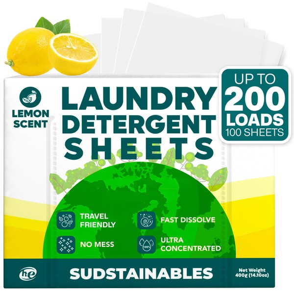 Sudstainables Laundry Detergent Sheets 200 Loads – Dissolvable Laundry Sheet for Washing Machines, Compact Alternative to Liquid & Powder Detergent, Travel-Friendly Soap | Lemon