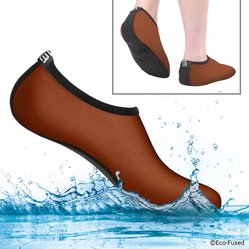 Eco-Fused Water Socks for Women - Extra Comfort - Protects Against Sand, Cold/Hot Water, UV, Rocks/Pebbles- Easy Fit Footwear- Yoga, Beach, Pool, Volleyball, and More (Small, Brown)
