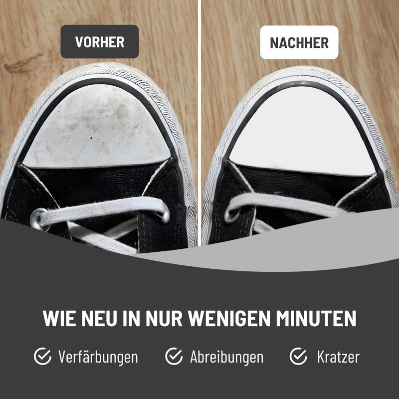 - Like new in just a few minutes: make your white shoes and soles shine again. Discolouration and abrasion no longer stand a chance.