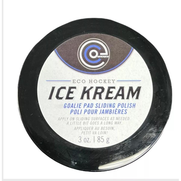 ECO Ice Kream goalie sliding polish. Apply a little bit to your pads sliding surfaces and fly!