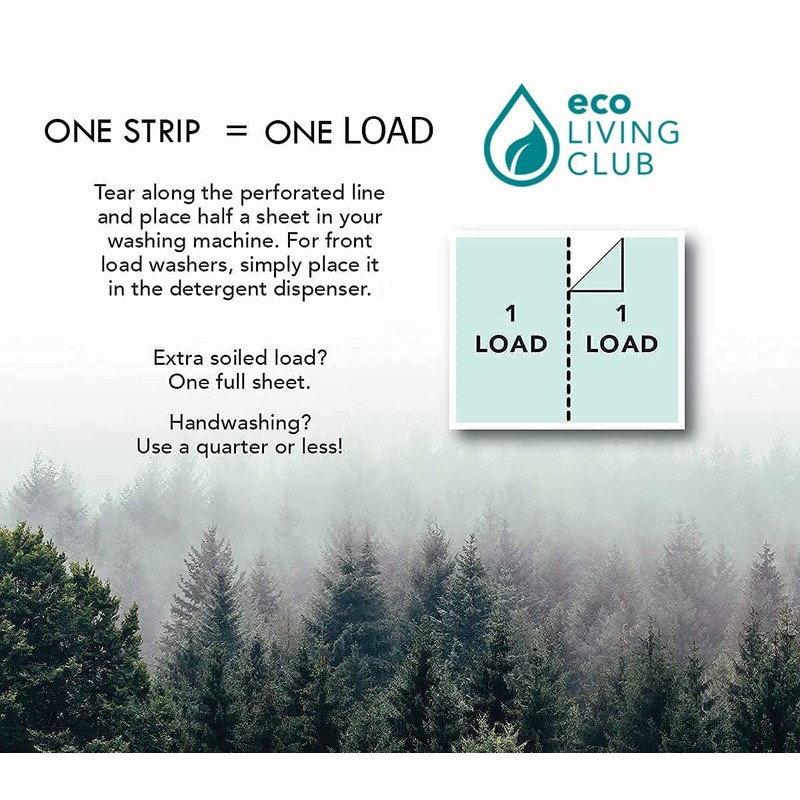 Eco Living Club Laundry Detergent Sheets Usage (Up to 80 loads), Hypoallergenic, Biodegradable, Travel Friendly Strips (Spring Scent)