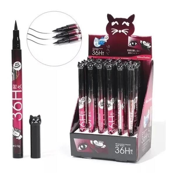 Paquete de 24 delineadores para ojos en plumón de larga duración color negro