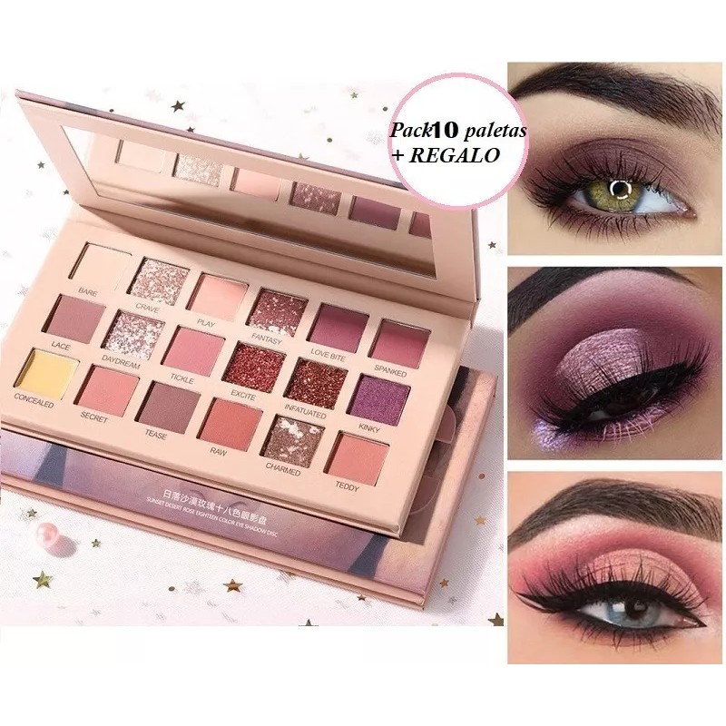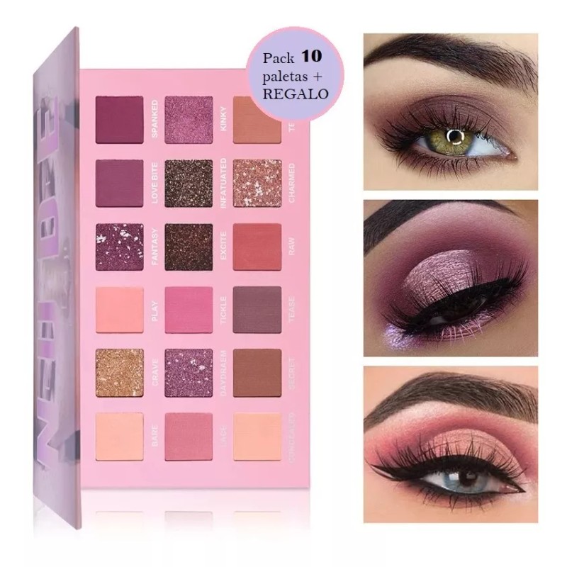 Lote de 10 paletas NUDE de 18 tonos c/u + REGALO 1 set de brochas