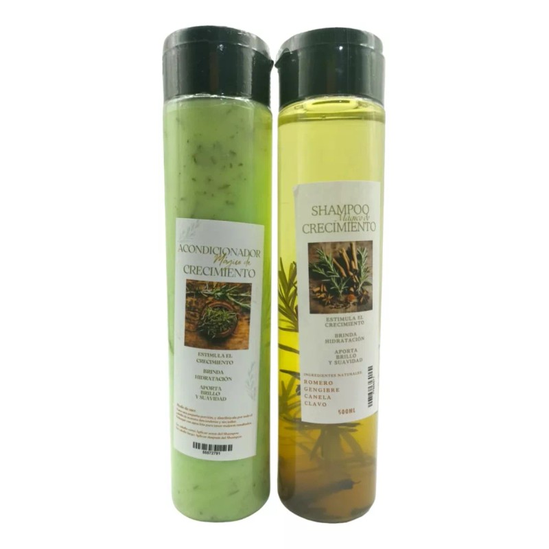 Complementa el tratamiento de crecimientoto de tu cabello con este pack de shampo + acondicionador, para prevenir la caida, acelerar el crecimiento y con el acondicionador que hidrata y suaviza con ingredientes 100% naturales.