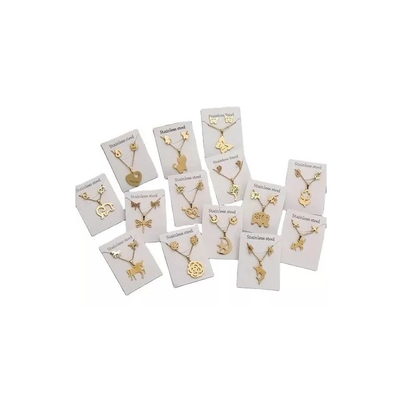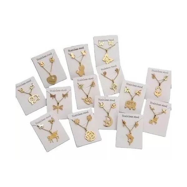 Eco R. Set 12 Juegos Collar Dije + Aretes Acero Inoxidable Mayoreo
