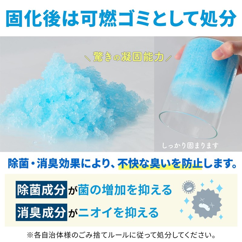 - ✅(ご使用上の注意)凝固剤は直接、排水口やトイレに入れないでください。凝固剤が固まりつまりの原因になります。目に入った場合は水で15分以上洗い、医師の診察を受けてください。粉末が直接肌に付着した場合は早めに石鹸で洗い流してください。吸引した場合は直ちに水、温水またはうがい薬でうがいをし、医師の診察を受けてください。 本製品は口に入れないでください。飲み込んだ場合は水または牛乳を飲ませ吐き出させた後に医師の診察を受けてください。熱湯を使用する際は容器の耐熱温度を確認し、火傷に十分ご注意ください。水分の量や含まれる塩分、油分などにより固まりにくい場合があります。数分ごとに様子を見ながら凝固剤を追加してご使用ください。
