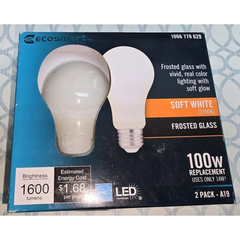 Eco-Smart EcoSmart 1006 778 629 2PACK-A19 FROSTED GLASS SOFT WHITE 2700K 14W