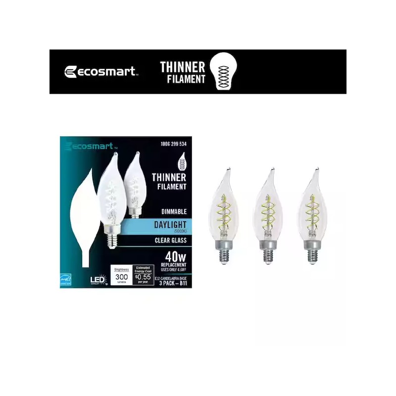 Eco-Smart Ecosmart 40-Watt Equivalent Dimmable E12 Candelabra 3 Pack B11 Daylight Clear