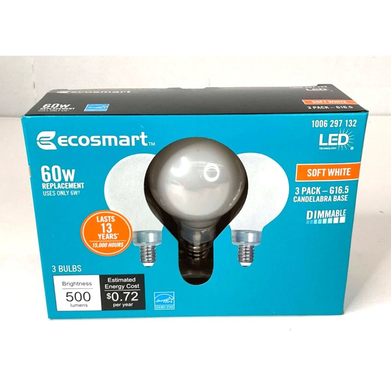 Eco-Smart Ecosmart 60w Replcement LED 3 Pack G16.5 Candelabra Base Soft White - NEW