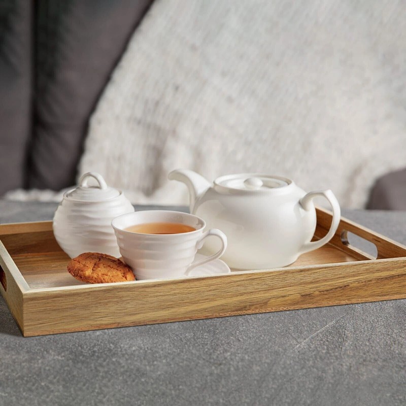 - Wood serving tray with handles: Get your hands on this acacia wood cutting board, perfect for all your kitchen décor needs. It's not just a serving tray, it's an upgrade to your coffee table décor. Now, isn't that a 'wood' way to start the day?