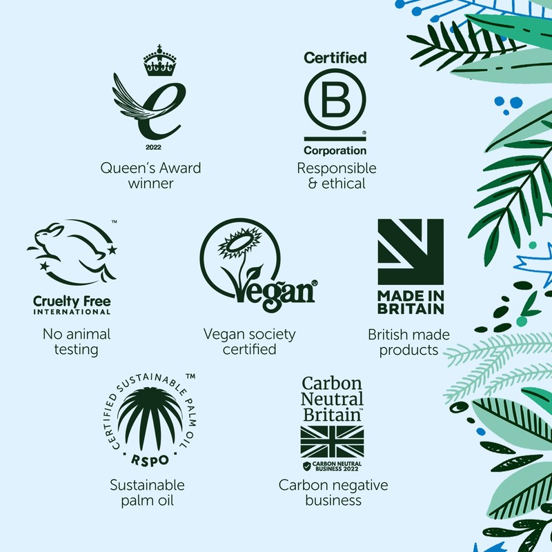 - No Nasties - You’ll find no Sodium Lauryl Sulphate or synthetic chemicals in our products. In fact, the entire range is free from detergents, SLS, alcohol, parabens, sorbates, silicones, sulphates and preservatives
