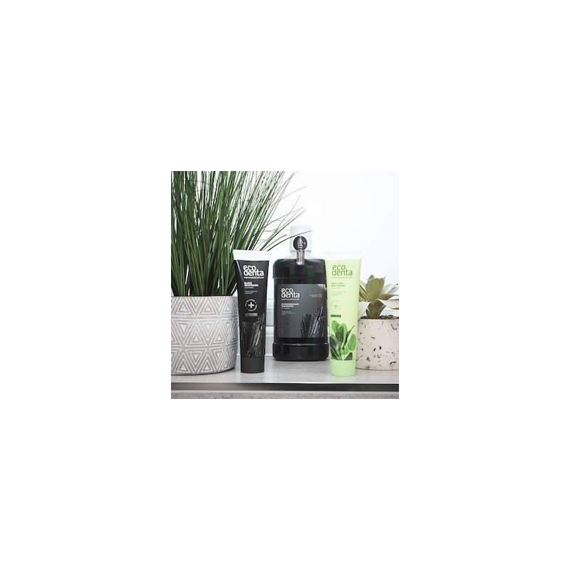 * For the most effective result, it is recommended to use ECODENTA Extra Whitening Toothpaste with Black Charcoal and Teavigo™. Shake well before using so that the mouthwash became black! Gently press the bottle until the dispenser fills up. Can be used directly from the dispenser. Rinse every time 2 minutes after you brush your teeth or eat, do not swallow. After using the mouthwash, wash your mouth with water.