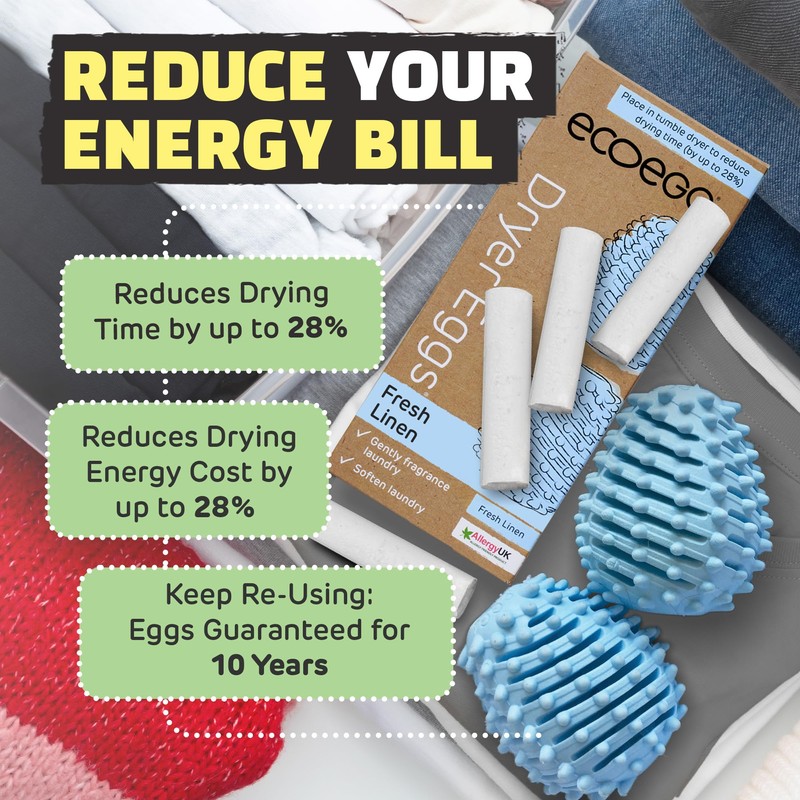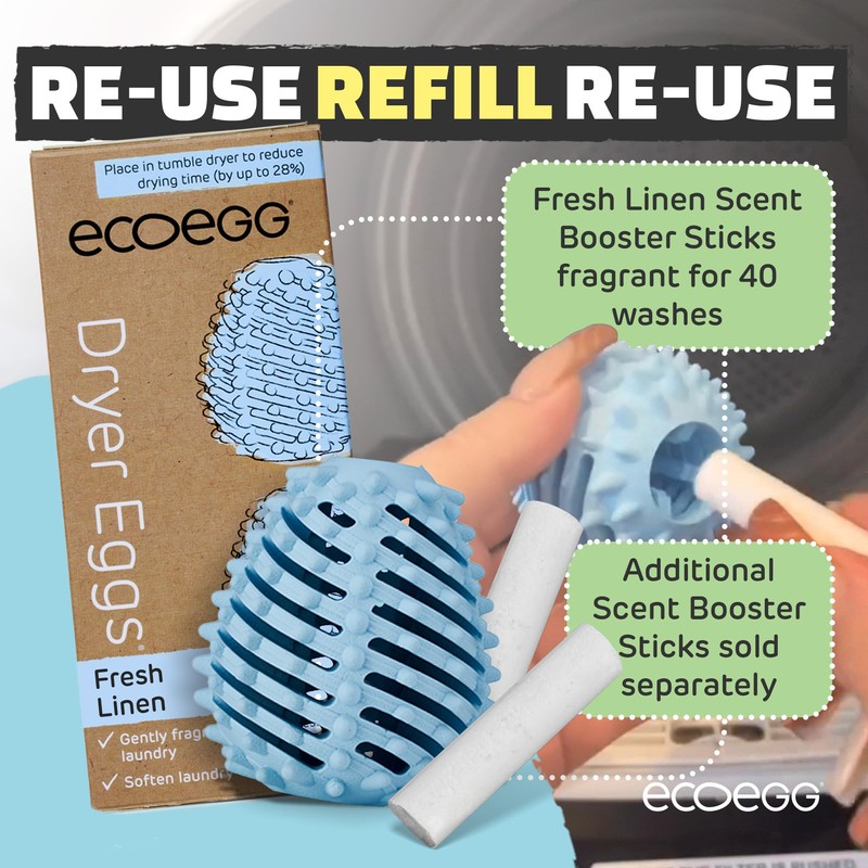 Ecoegg Dryer eggs is one of the most expensive appliances to use in the home, but sometimes with the unpredictable British weather, you are left with no choice but to use it. We have a product, Our Ecoegg Dryer eggs, that reduce your tumble drying time by up to 28 percent. Dryer eggs dry your clothes more quickly but they also soften and gently fragrance your laundry. The natural fragrance oils contained in the fresh Linen and spring blossom fragrance sticks add a delicate scent to your laundry, or you can opt for a fragrance-free version. We keep the fragrance levels low, the dryer eggs are hypoallergenic. The dryer eggs help to separate your laundry so that more air can circulate, drying each item more quickly. The nodules on the eggs are designed to help soften your clothes naturally so there is no need to use fabric softener. The Ecoegg Dryer eggs come in fresh Linen fragrances.