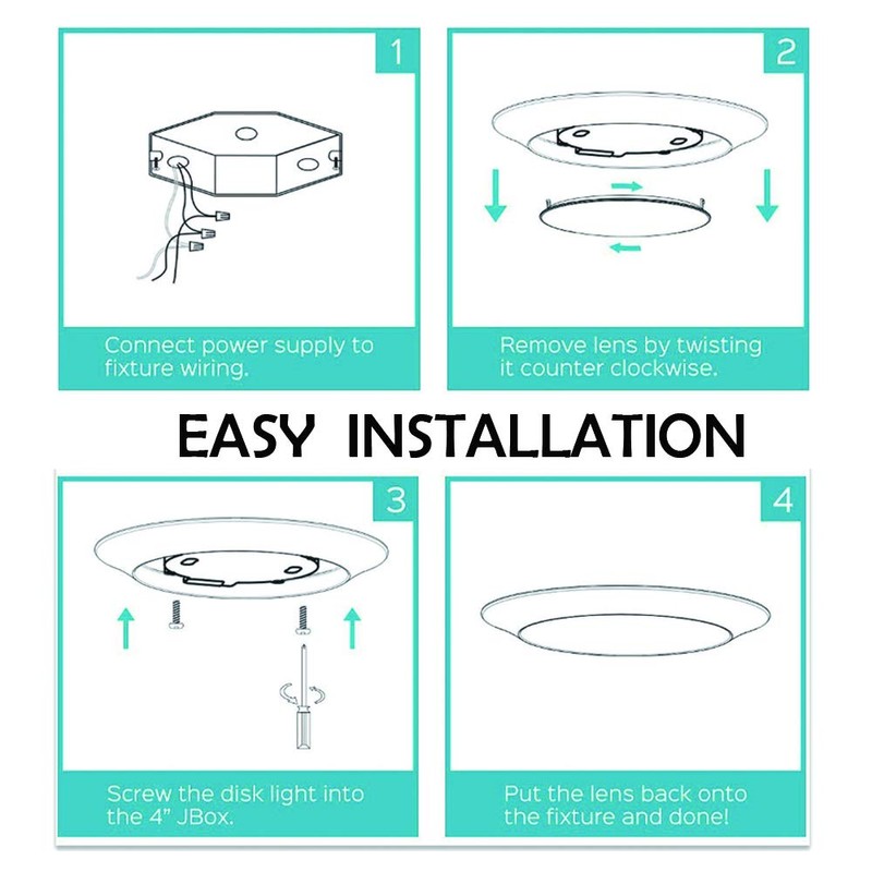 - ✅EASY INSTALL - No hassle installation with these disc lights which can be set up in a few easy steps! Just follow the installation guide to screw in the mounting plate to 4 inch recessed junction box, Optimal for new construction and retrofit applications.
