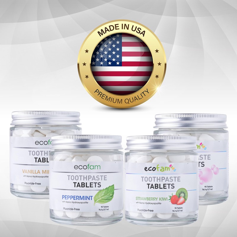 - Contains zero plastic! Our toothpaste tablets are packaged in a glass jar that can be reused or recycled. Made in the USA. Vegan-friendly and never tested on animals.