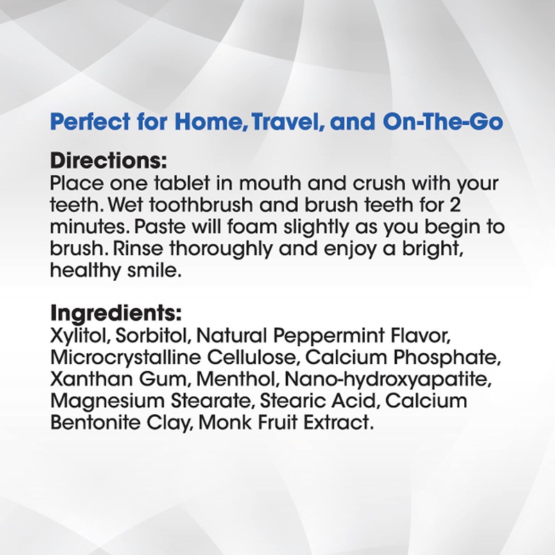 - Perfect and easy to use while traveling. Bite on Toothpaste tablet to crush in your mouth and brush your teeth with a wet toothbrush.