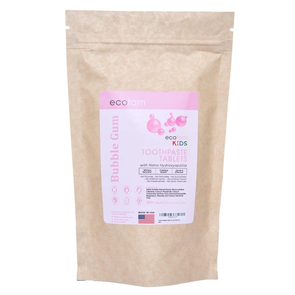 Ecofam Toothpaste Tablets – Bubble Gum | Chewable Toothpaste Tablets for Fresh Breath | Fluoride Free | Nano Hydroxyapatite Toothpaste | 350-Count Refill Bag