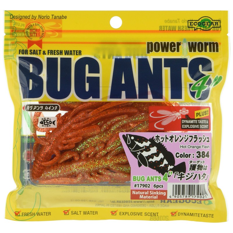 Ecogear Bug Ants 4 Inch (6 Pack) 384 Hot Orange Flash