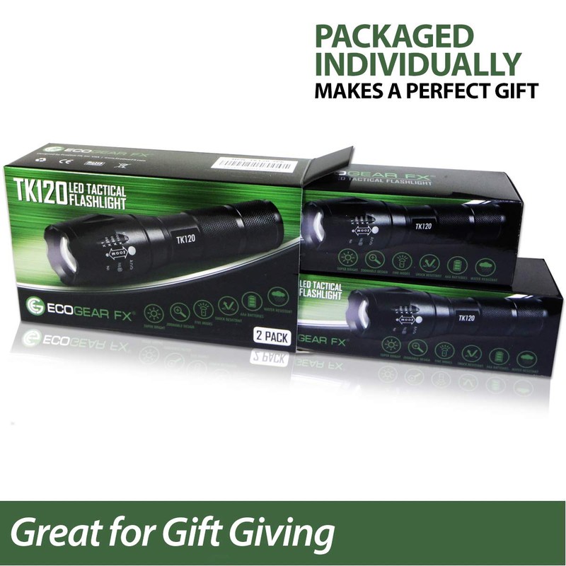 EcoGear FX LED Flashlights - Small Camping Flashlights with High Lumens, 5 Light Modes, Zoomable Beam - Bright Tactical Flash Light for Outdoor Home and Emergency [2 Pack]