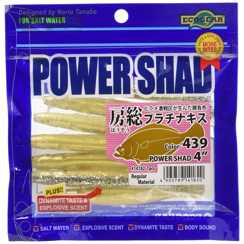 Ecogear: Designed to be used all around from no-sinker to 1 - 2 oz heavy weight jig head rigs.The greatest feature of the Power Shad lures is the wobbling body that draws in your target.If you see baitfish on the surface of the water, it is effective to make it swim with a no-sinker rig.The center of gravity is on the rear of the body, so you can get more distance easily with more than just your weight.The 4-inch and 5-inch models has regular materials and 3-inch has high-projection natural sinking materials.