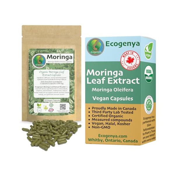 Ecogenya NEW Ecogenya Organic Moringa Leaf Extract Vegan Capsules | High Potency Superfood (120 Capsules (Two Month Supply))