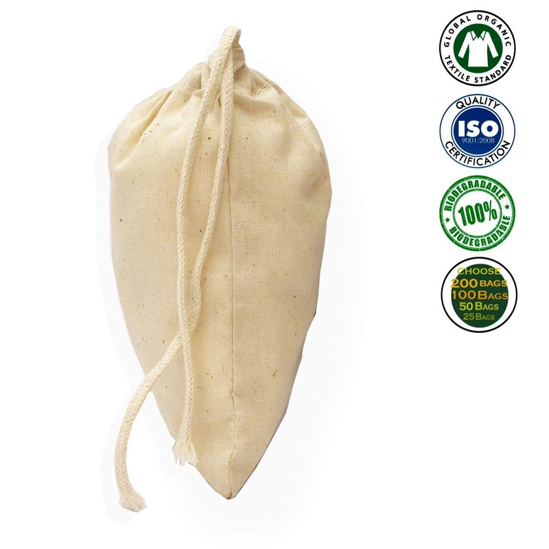 - Reusable Single Drawstring Bags - These muslin bags are crafted from natural cotton, offering an eco-friendly solution for kitchen storage. Ideal as cheesecloth bags or brew bags, they are washable and reusable for long-term use.
