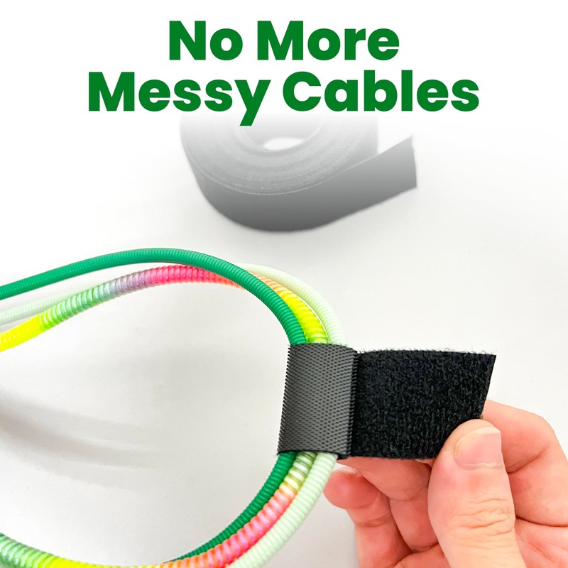 - GREAT FOR CABLE MANAGEMENT - Simply cut to length from the tape roll for your various needs. Wrap the tape around your cables, and the double-sided hook and loop strips will securely adhere to each other. This reusable tape allows you to adjust the tightness as needed or repurpose it for different items.