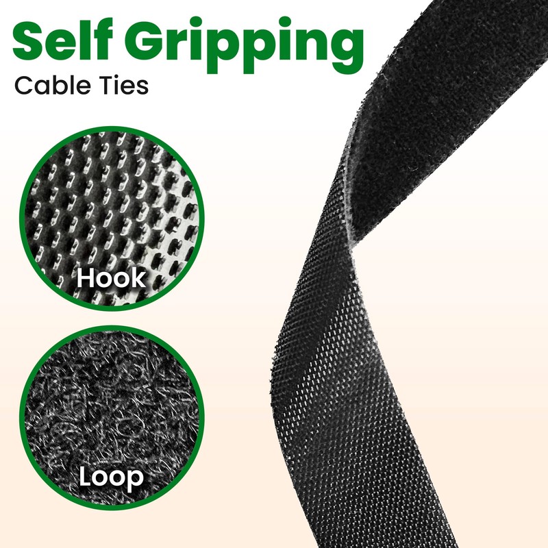 - SMART SELF GRIPPING DESIGN - Made from durable nylon material, the tape features a smooth velvety touch that won’t scratch surfaces. Specially designed with hook and loop sides that securely grip onto themselves for a strong hold. The self fastening tape leaves no residue and does not cause damage to cables, making it a safe and efficient choice for organizing without any mess.