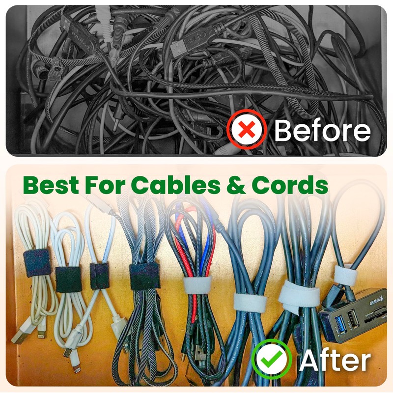 - MULTI-PURPOSE TIE WRAPS - Perfect for any task you'd typically use a strap, rope, or twine for, but with greater ease and gentleness! Beyond cable and cord management, it's also excellent for garden use, for securing shrubs, vines, plants and flowers in place without hurting them. Ideal for use at home, in the garage, office, vehicle, and even during camping and other outdoor activities too. Get yours today!