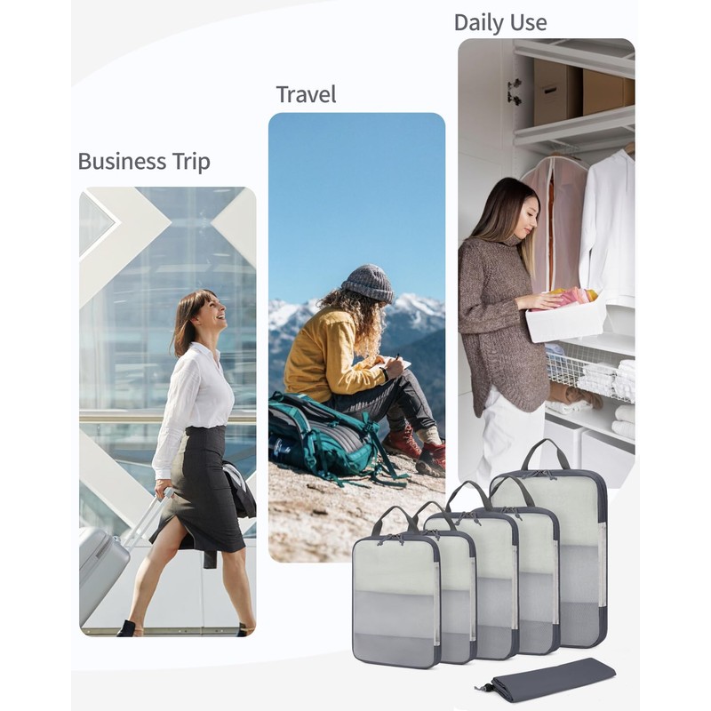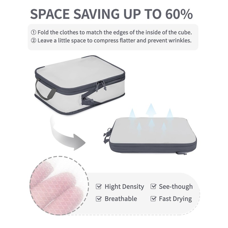 - 【Save Up to 60% Space】: Reduce luggage space by up to 60% with our ECOHUB Compression Packing Cubes. Equipped with a specialized zippered section for compression, they allow for compact packing. Alternatively, uncompress them by 10 cm for regular use. These versatile cubes are ideal for maximizing packing efficiency and maintaining organization during your travels.
