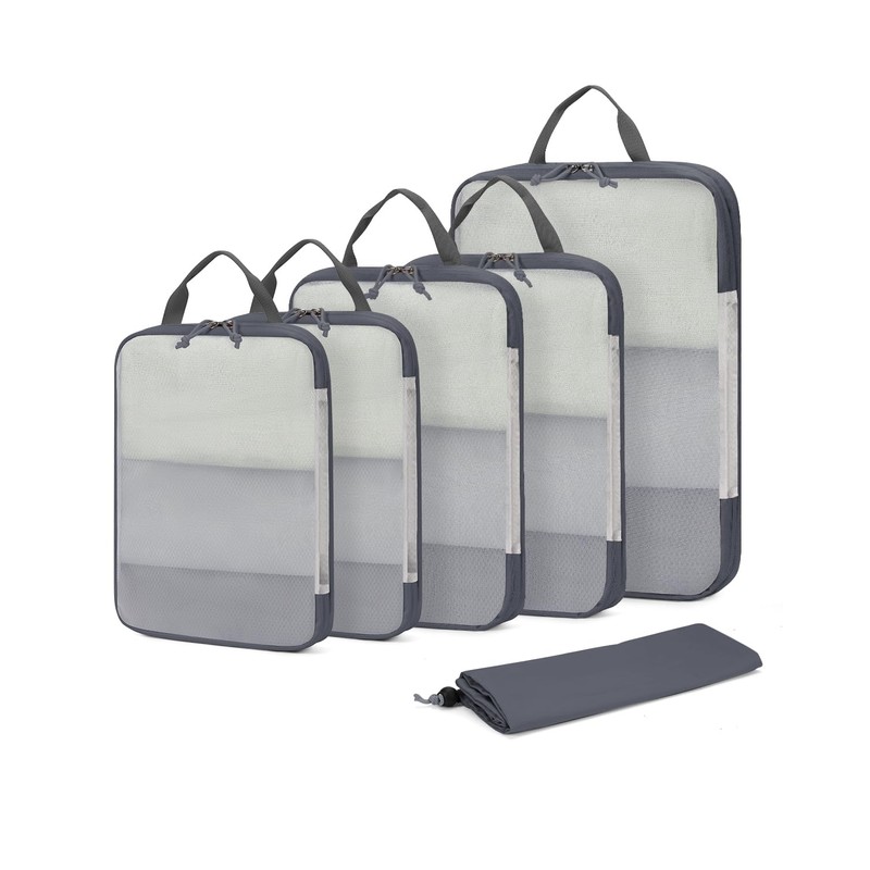 ECOHUB 6pcs Compression Packing Cubes Set for Backpack Suitcases, Expandable Travel Organiser with Shoes Bag, Ultra-resistant Packing Organiser for Carry On Luggage, Grey (Patent Pending)