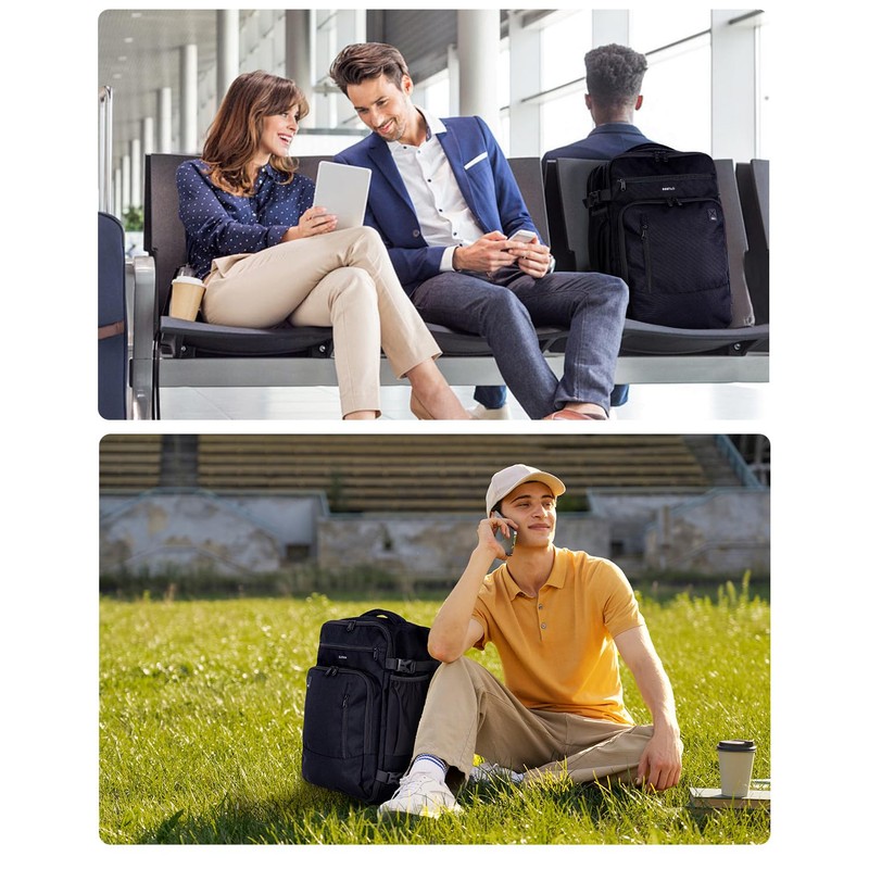- Spacious and user-friendly: the spacious main compartment can be opened like a suitcase. The elastic straps are perfect for bulky items such as shoes and clothes. Side compression straps are adjustable from this backpack so you can pack it up. The side handle lets you carry the luggage easily like a travel bag. There is an expandable pocket for water bottles.