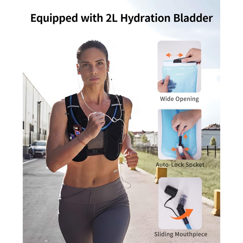 ECOHUB Running Hydration Vest Backpack,Lightweight Breathable Pack with 2L Water Bladder Bag Daypack for Hiking Trail Running Cycling Race Marathon for Women Men (Black)