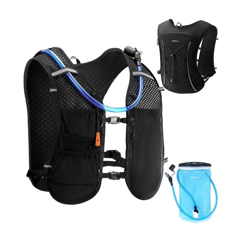ECOHUB Running Hydration Vest Backpack,Lightweight Breathable Pack with 2L Water Bladder Bag Daypack for Hiking Trail Running Cycling Race Marathon for Women Men (Black)
