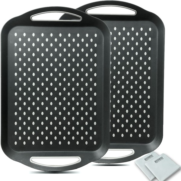 ECOIOU Larger Nonslip Food Serving Tray, 17.9'' x 12'' Grippy Handles Surface Bottom Design, Perfect Trays for Eating, Lap, TV, Couch, Black, Set of 2