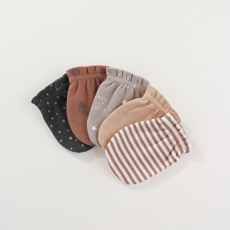 Ecojoy Newborn Baby 5 Hats and 5 Pairs Scratch-Resistant Mittens for Babies, Boys and Girls, Age 0-6 Months, 100% Cotton, Brown Gloves