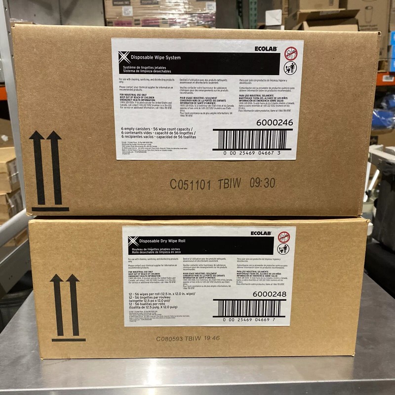 Ecolab 6000246 + 6000248 disposable dry Wipe System 12 rolls + 6 canisters