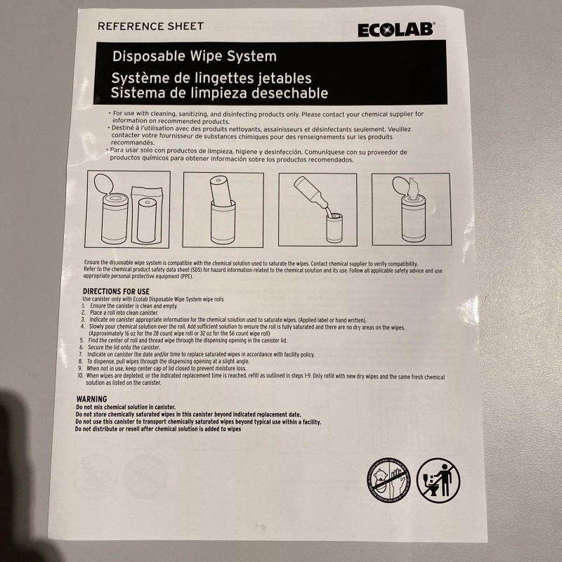 Ecolab 6000246 and Ecolab 6000248 disposable dry wipe system.