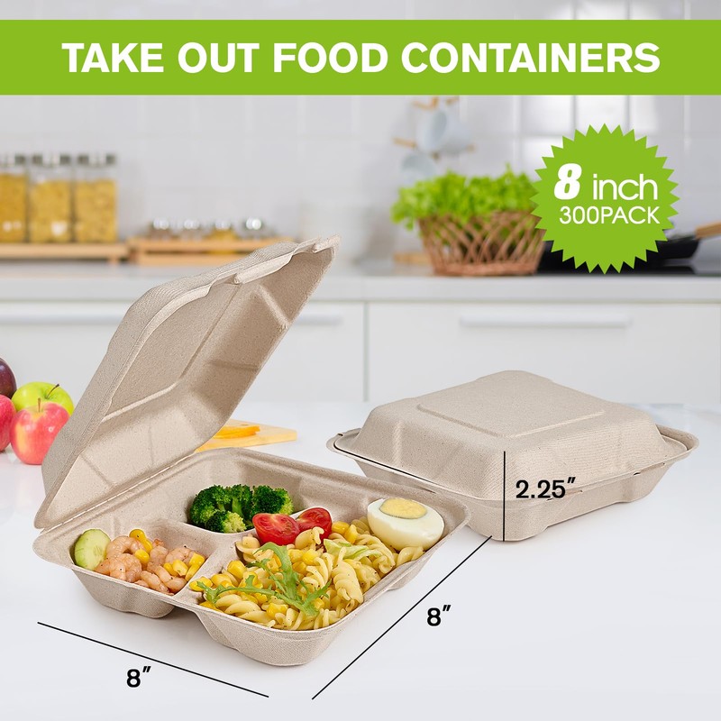 - Value Package: Set include 300 pack 8*8 inch to-go containers. Perfect for restaurants, caterers, or food trucks, also suitable for travel, picnic, barbecue