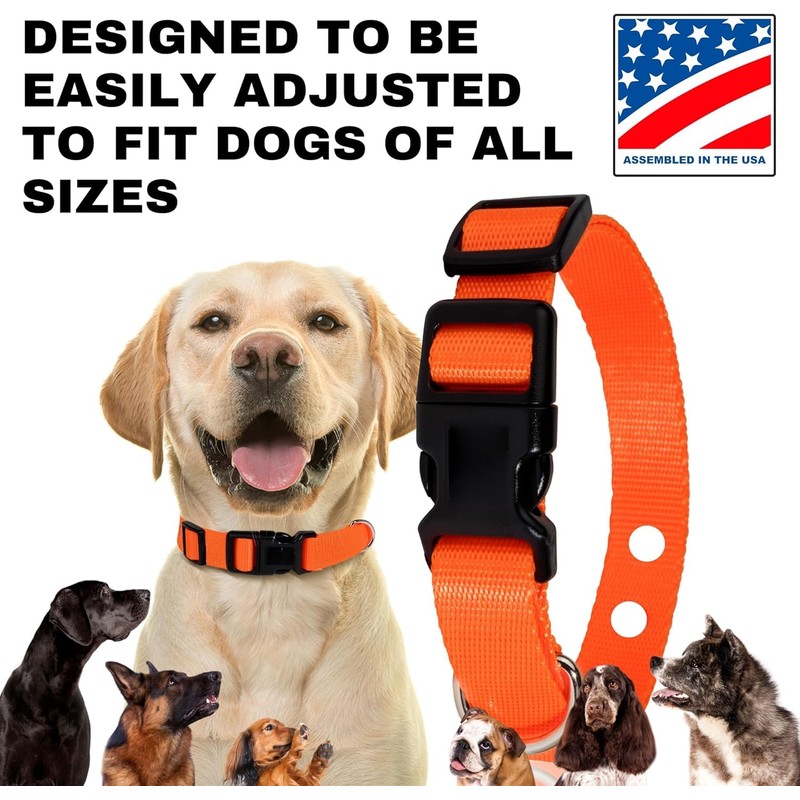 - Works with leading electronic dog training systems. Comfortable for all sized dogs. Quick-release buckle allows easy removal when not in use.