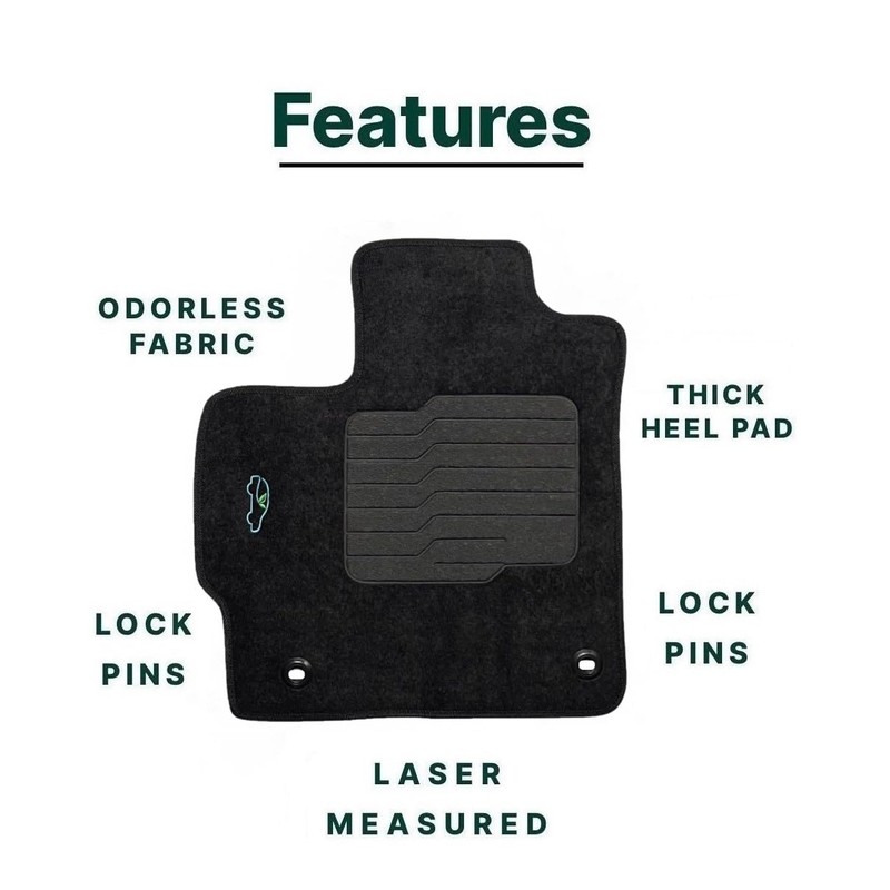 All ecoMats floor mats have Anti-Slip Heel Pad and retention clips that match the manufacture’s lock pins to keep your floor mats in place when your car is moving.