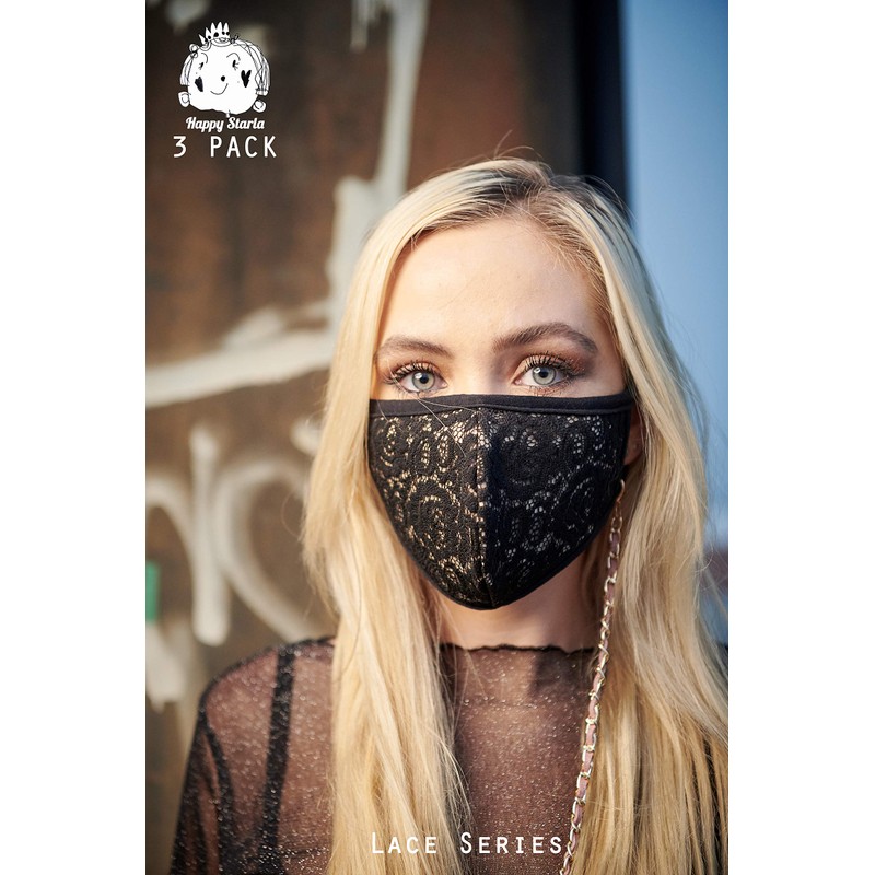 - 3 Pack - Triple Layer 100% Cotton White Inside Fabric. Elegant Black lace luxury outer fabric.