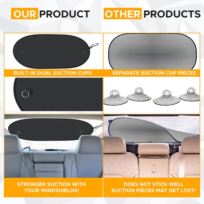 - Enhanced Mesh: Compared to the conventional rear window tint, EcoNour's Windshield Sunshade features an 80 GSM protective mesh with dual suction cups, which is effective in sun protection. Unlike other shades, our sun shade for back car window offer impeccable sun protection while others doesn't.
