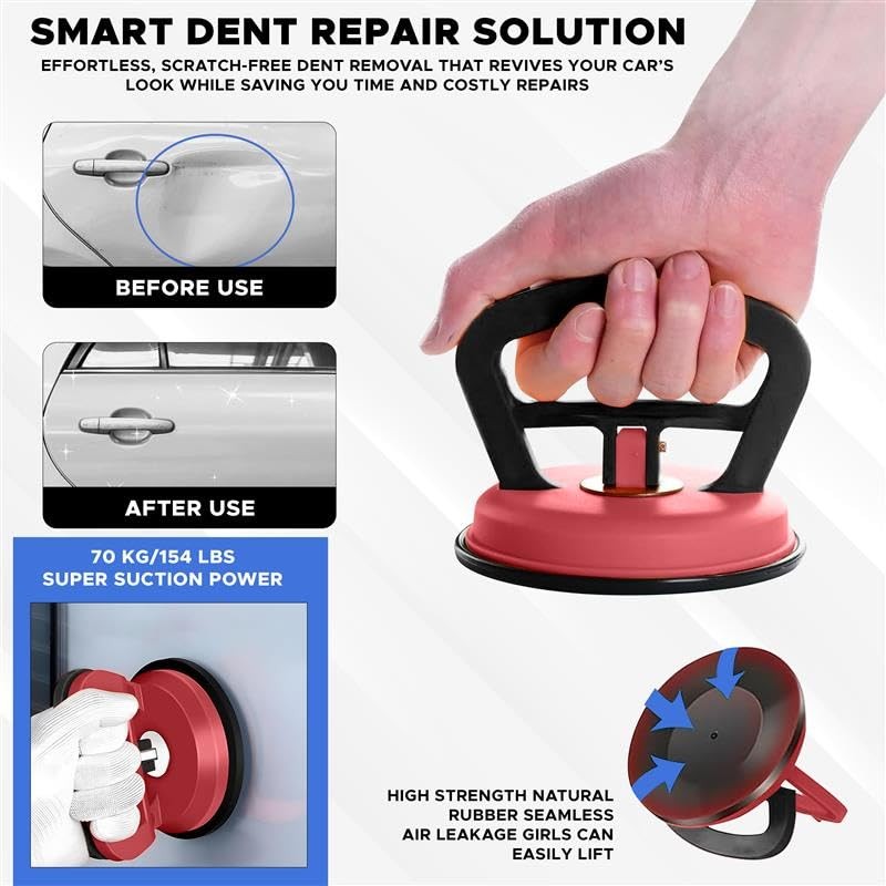 - Heavy-Duty Build with Paint-Safe Rubber Grip: This dent remover is crafted from premium ABS plastic and durable natural rubber, our dent puller ensures a strong grip without scratching your vehicle’s paint. Features a quick-release handle and reinforced structure for maximum pulling power.