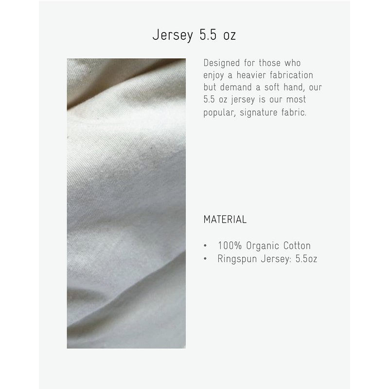 - Premium Cotton: 100% ringspun cotton t-shirt. Designed for those who enjoy a heavier fabrication but demand a soft hand, our 5.5 oz jersey is our most popular, signature fabric.