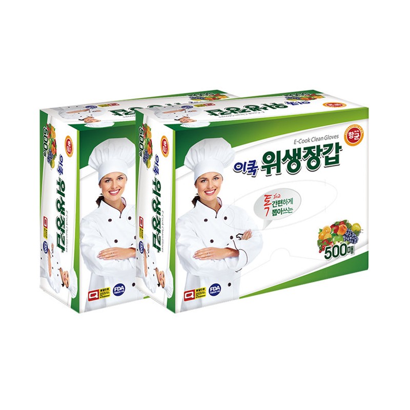Ecook Multipurpose Sanitary Gloves 500 x 2 Antibacterial Disposable Gloves / 이쿡 다용도 위생장갑 500매 x 2개 향균 일회용장갑