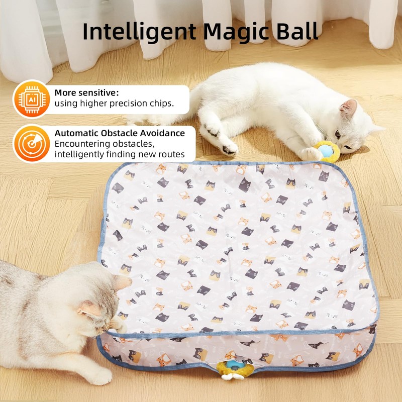 - 【Multiple game modes】: 1. Our interactive toys are designed to entertain your indoor cat for hours. You can put the bouncing ball into the mat, and the bouncing ball can roll irregularly on the mat, making the toy more mysterious. Our research has found that things moving under mats are very attractive to cats. 2. You can also have the bouncing ball roll on the floor and have your cat chase it around the room. The obstacle avoidance function and irregular movements of jump balls can provide cats with ultimate pursuit pleasure.