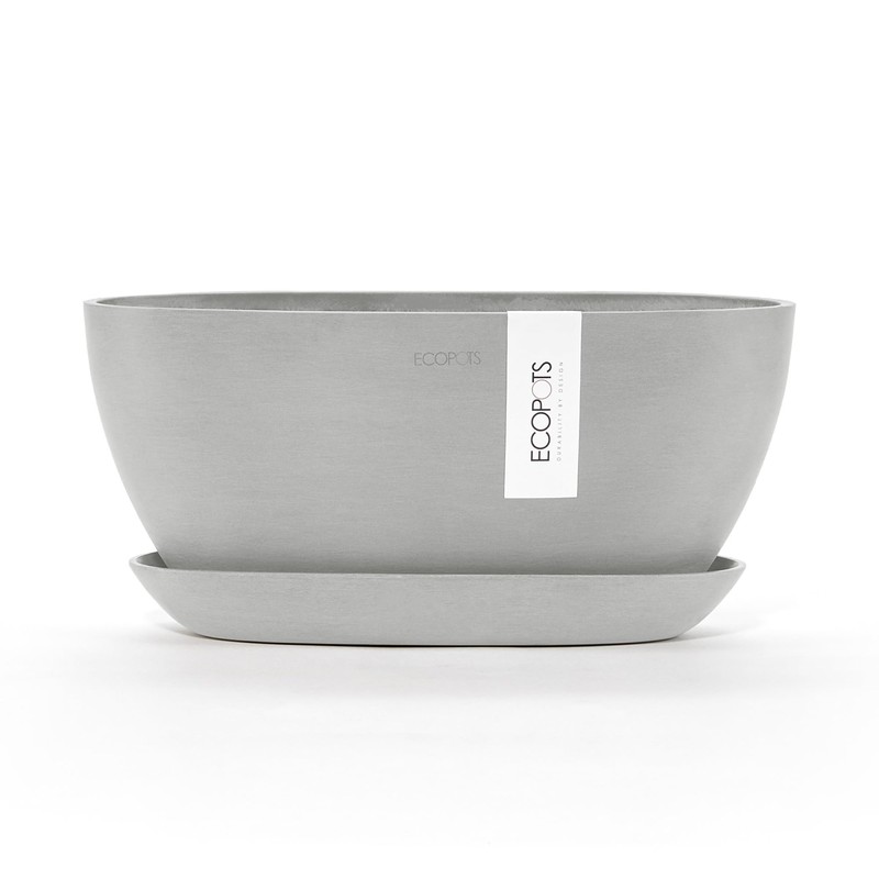 Ecopots Sofia Durable Modern Oval Indoor/Outdoor Recycled-Based Composite Flower Pot Planter w/Water Reservoir, White Grey, 12"